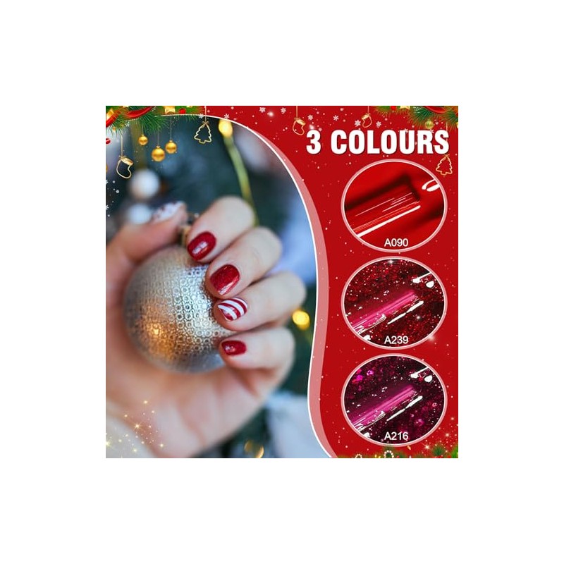 - Gel Nagellack Rot: 3 Stück Nagellack, je 8 ml. Rot, Rot glitzer, burgunderrot glitzer, dunkelrot UV Nagellack set. Geeignet für alle täglichen Arbeits, Dating, Party, Weihnachten und Zeremonienaktivitäten.