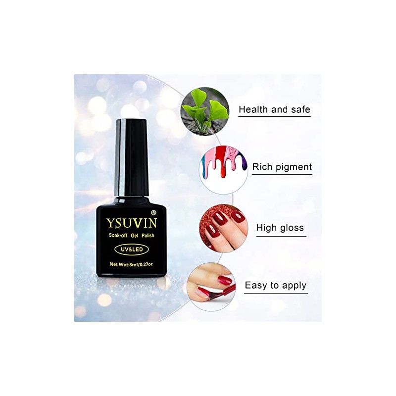 - Soak-Off UV: YSUVIN Gel Nagellack Set muss mindestens zwei Minuten lang unter UV-Licht ausgeh√§rtet werden. Farbbest√§ndig, flexibel und gl√§nzend best√§ndig gegen jeden Test.