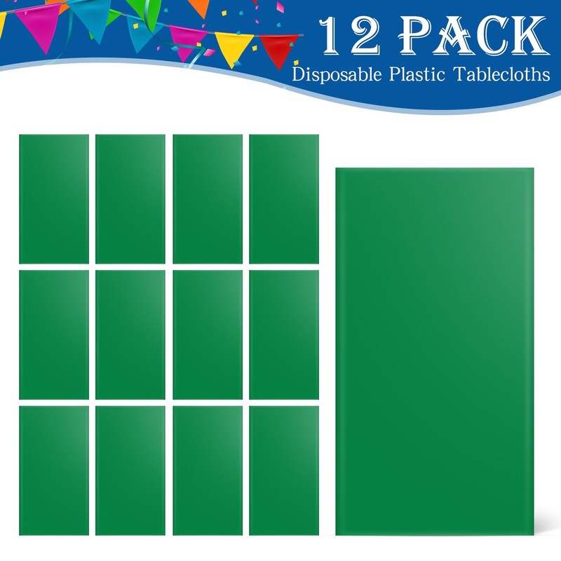 YSYJ 12 Pack Green 54 x 108 Inch Disposable Plastic Tablecloths Rectangle Table Cloth Plastic Table Cover for Parties