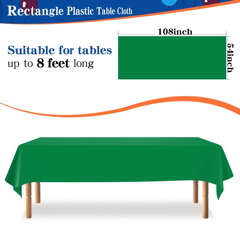 - Premium: Made of heavy and high-quality plastic, 54"x 108" rectangle plastic table cloth covers most rectangular tables up to 8 feet.