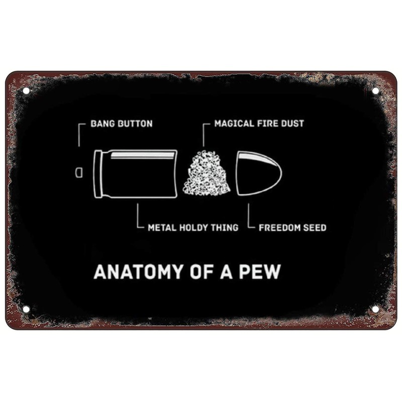 YTOMEAT Funny retro tin sign Anatomy of A Pew Pewer Ammo Gun Amendment Meme for Home bars restaurants cafes bedroom Living room art Wall Decor 12X8 inch