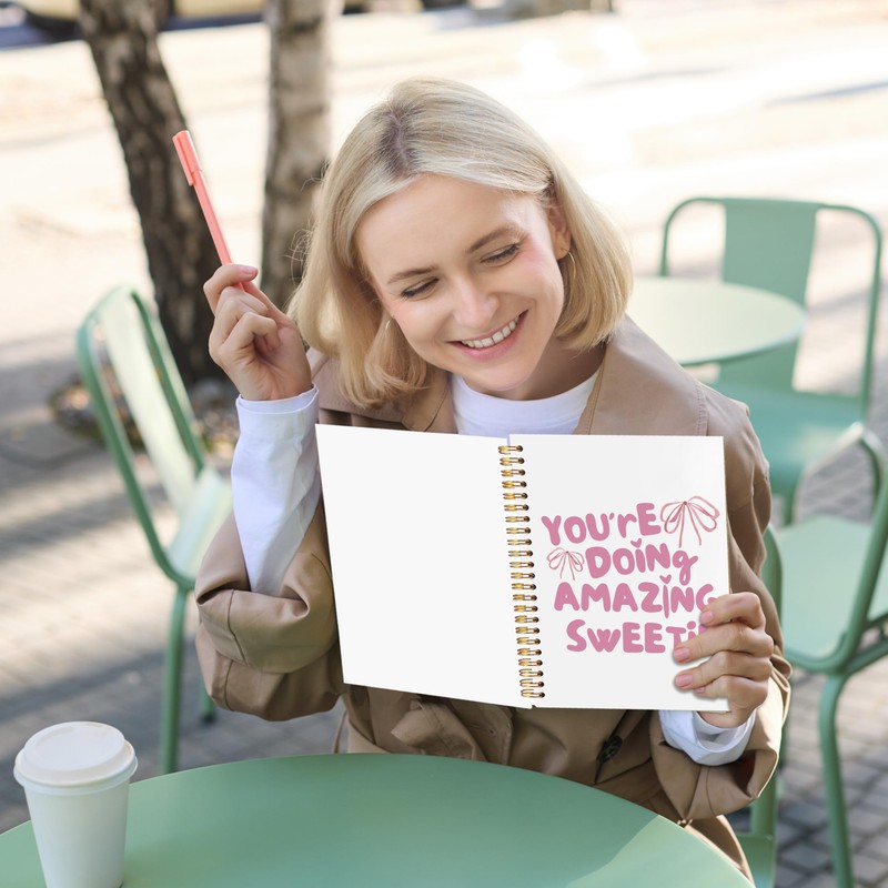 YTRGI Coquette Inspirational Journaling Notebook, Girly Preppy Notebooks for Note Taking, Positive Journals for Writing, You're Doing Amazing Sweetie Motivational Quote Spiral Notebook 5.5x8.3 Inch