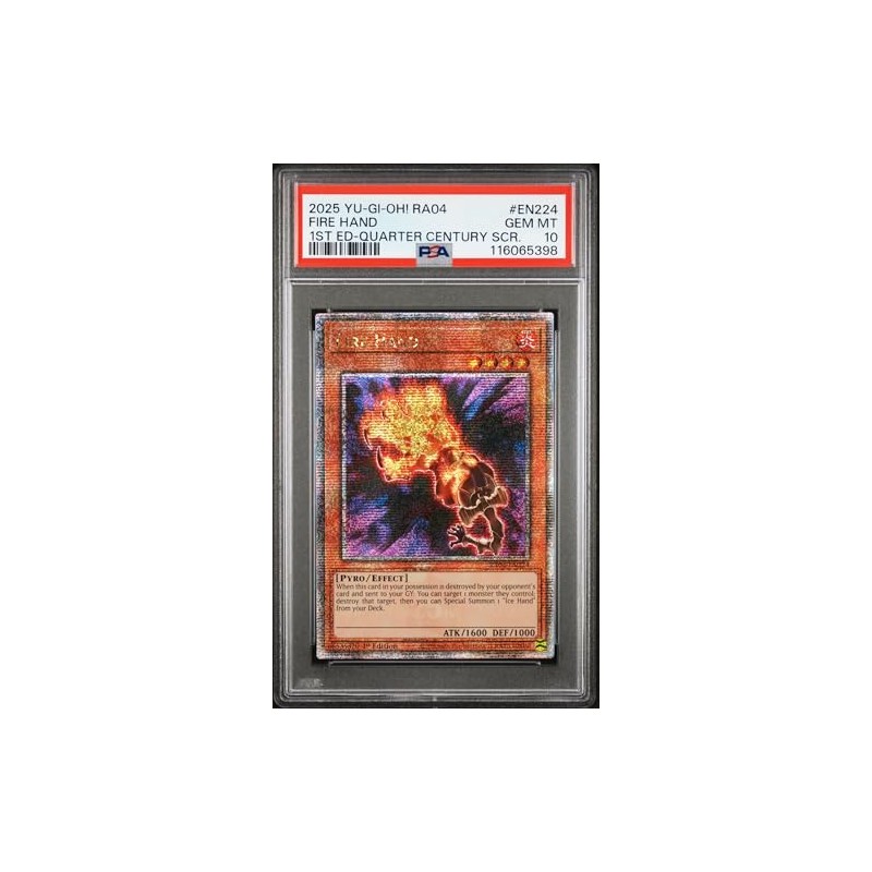 - PREMIUM BUNDLE (3 COMPONENTS): Yu-Gi-Oh! TCG Ra04-Quarter Century Stampede Fire Hand 1St Ed-Quarter Century Scr. Card #EN224 + 10 GEM MINT PSA Grade + Encapsulation in PSA Hard Protective Case