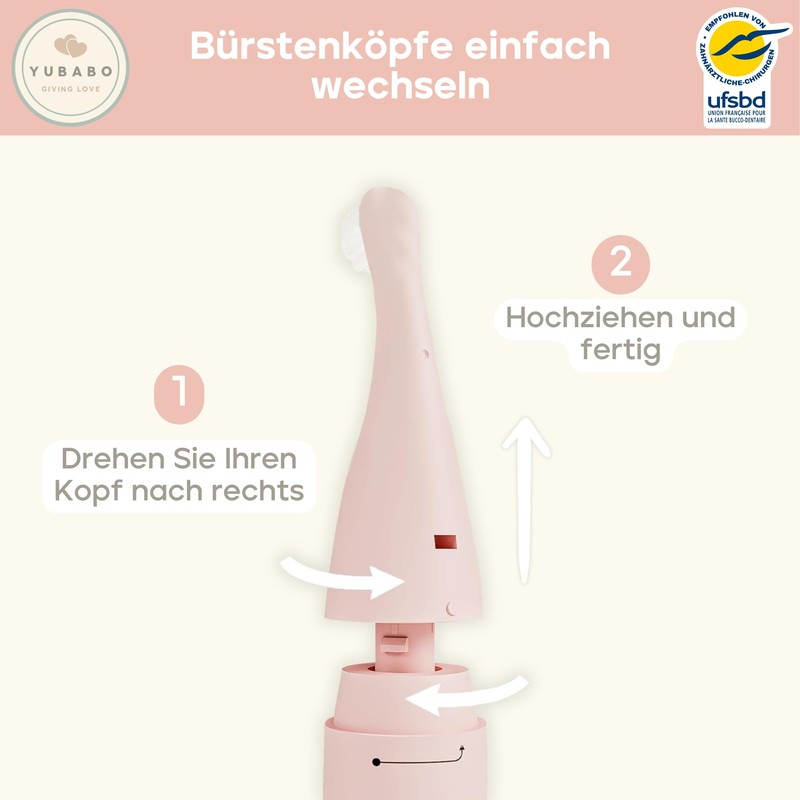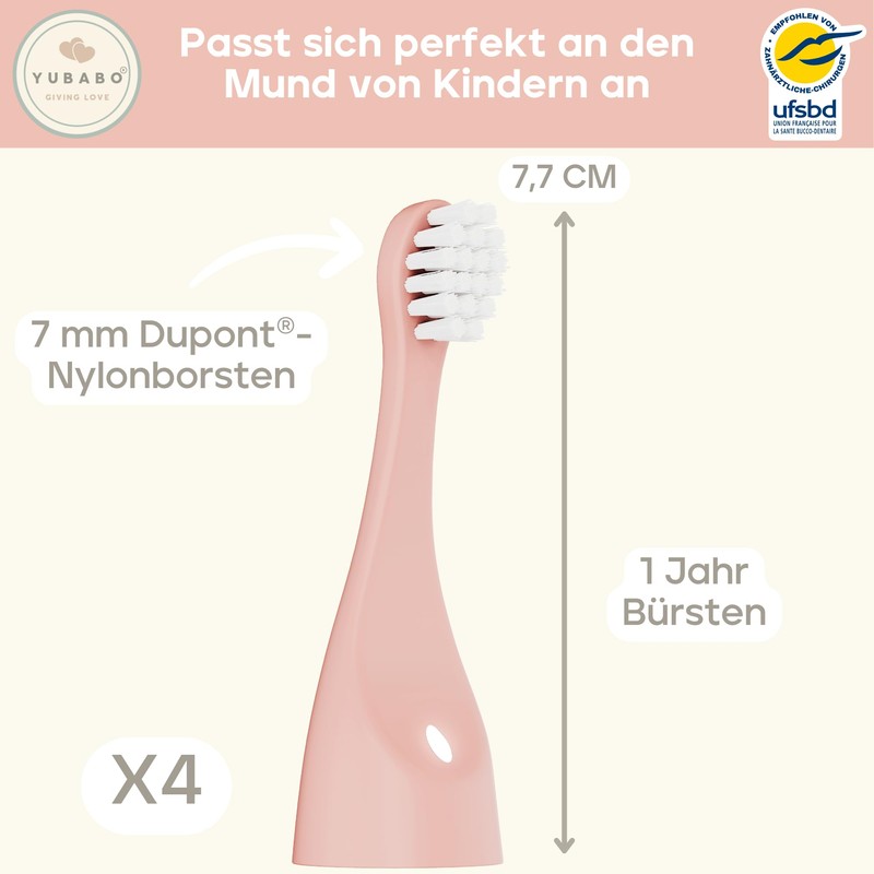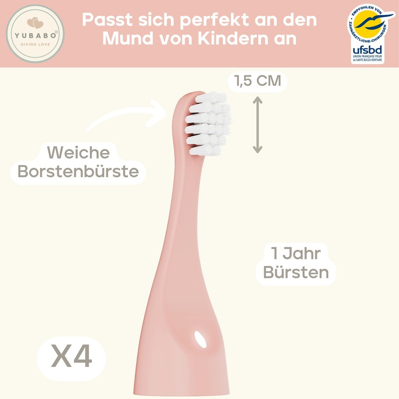 Yubabo Stück Aufsteckbürsten, Kopf für elektrische Zahnbürste für YubaBrush, 4er-Pack Bürstenköpfe für 3-6 Jahre rosa, ultraweiche 7 mm Dupont-Borsten