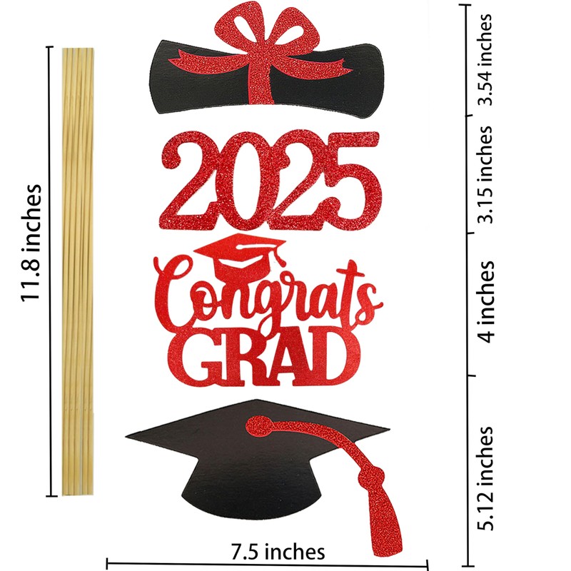 YuBoBo Graduation Decorations Class Of 2025 Table Vase Toppers Deco. 16 PCS Party Deco Supplies Photo Props Kits Big Sticker Kids Party Centerpieces Favor (Red)
