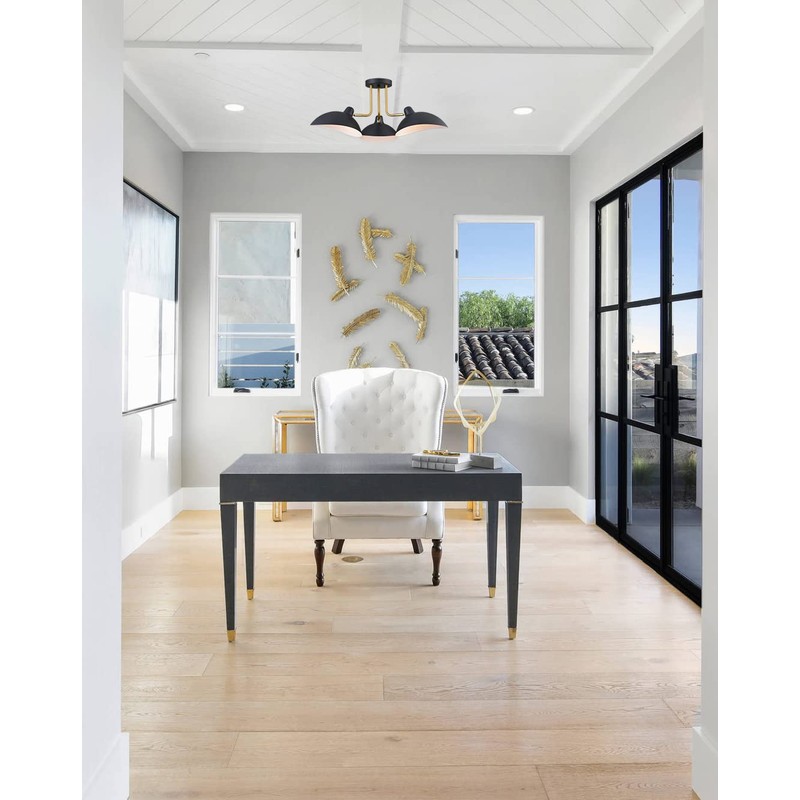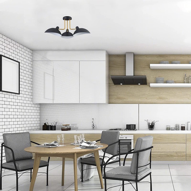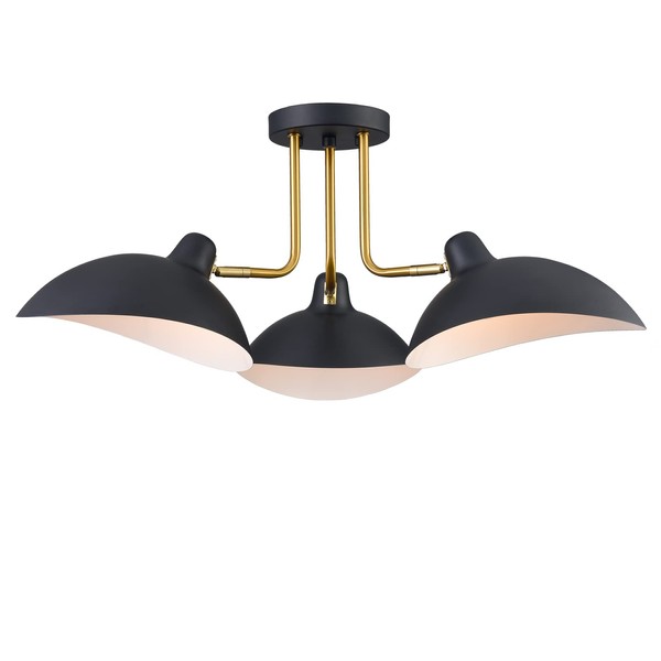 - Industrial Farmhouse Design: the farmhouse ceiling light features 3 individual arms with three ample shades that gracefully illuminate interiors. Its two tone finish with modern gold and black creates a unique and retro design to complement any room