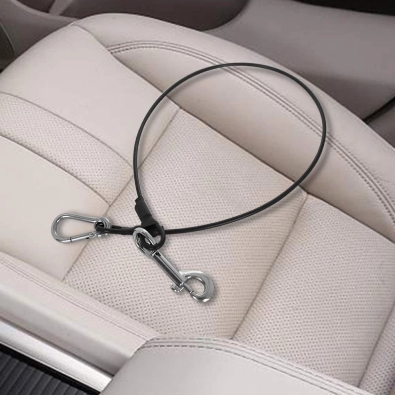 Chew Proof Restraint: Dog seat belt made out of heavy duty nylon coated steel rope, Can prevent from biting the rope.
