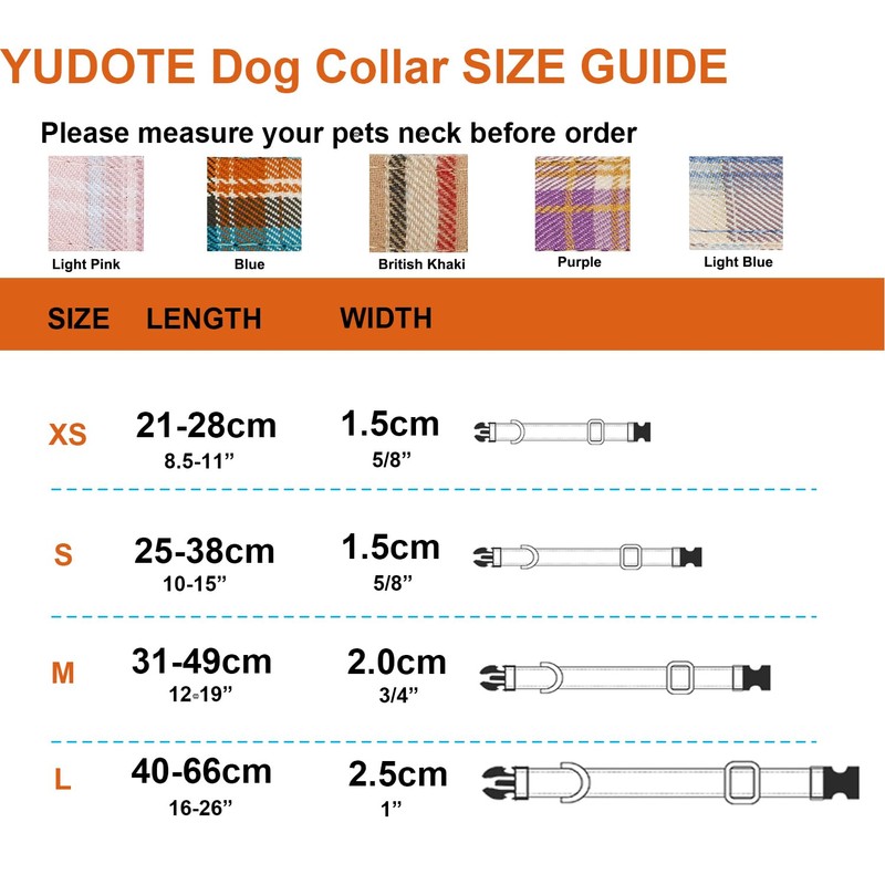 These YUDOTE plaided dog collars are made from 2-layer fabric wrapped webbing,soft,lightweight yet strong enough for your dogs every day use.