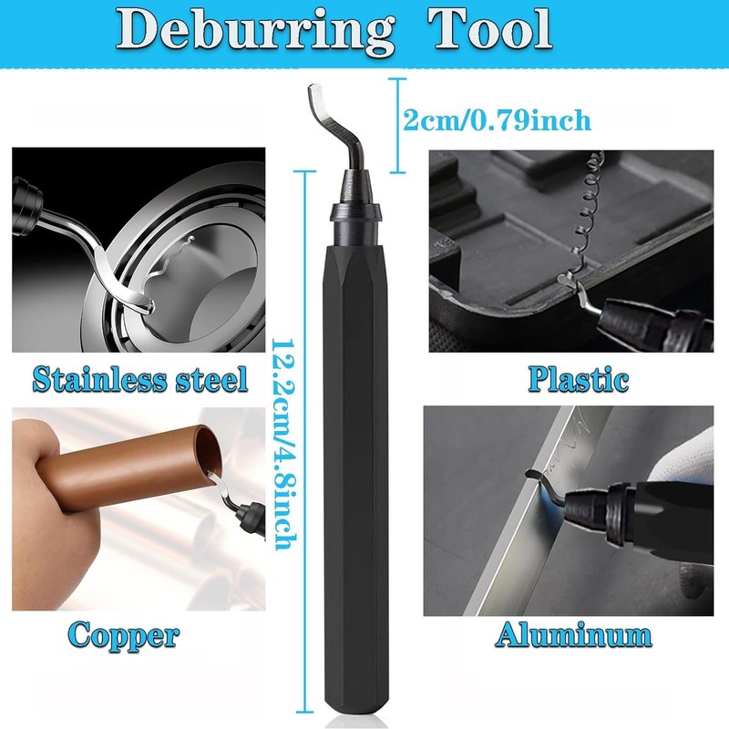 - Deburring Tool: This Manual Deburring Tool made of high-speed steel ideal for removing burrs from aluminum, copper, PVC, brass,plastic pipes, resin work and more