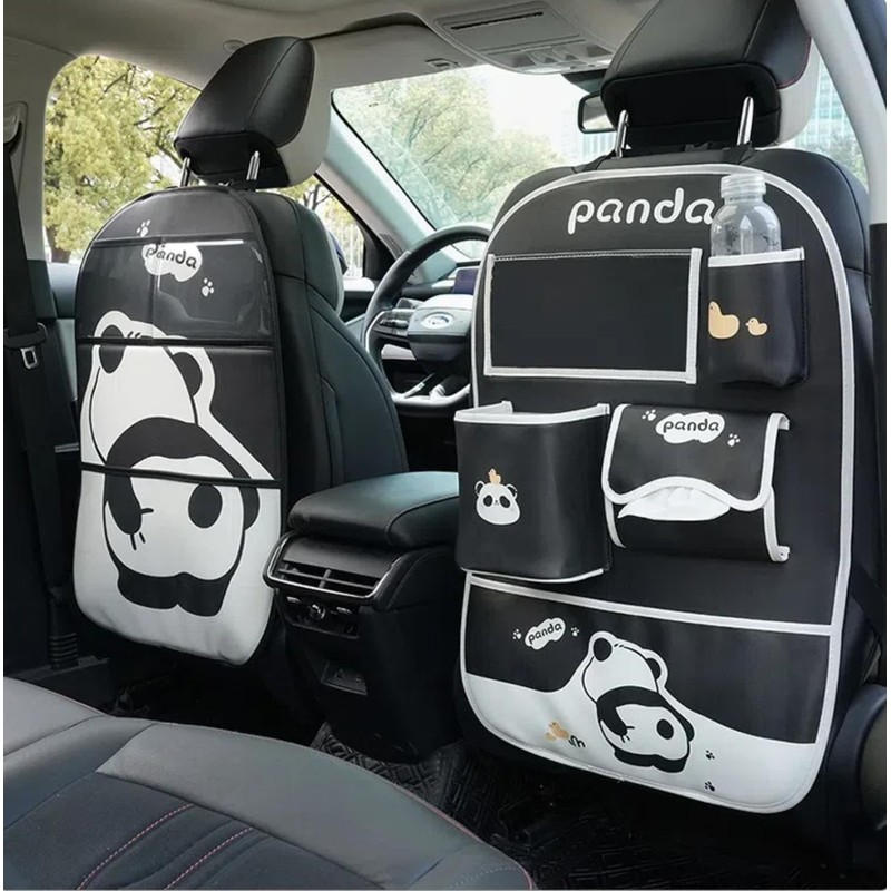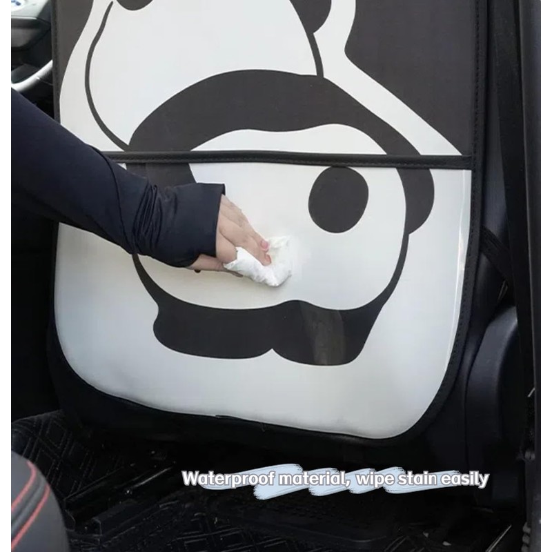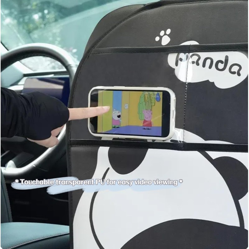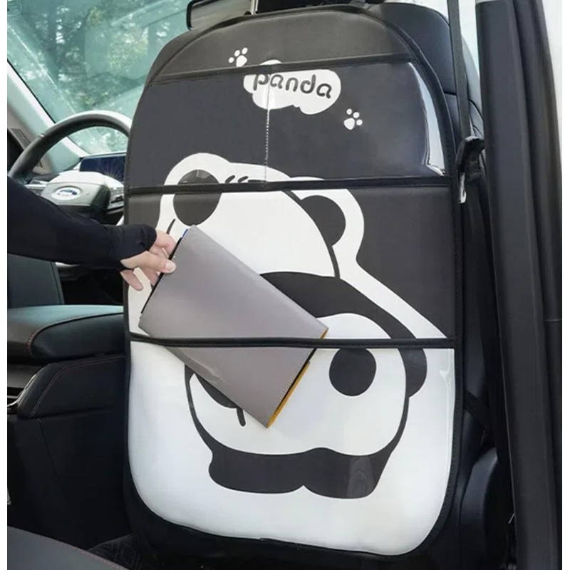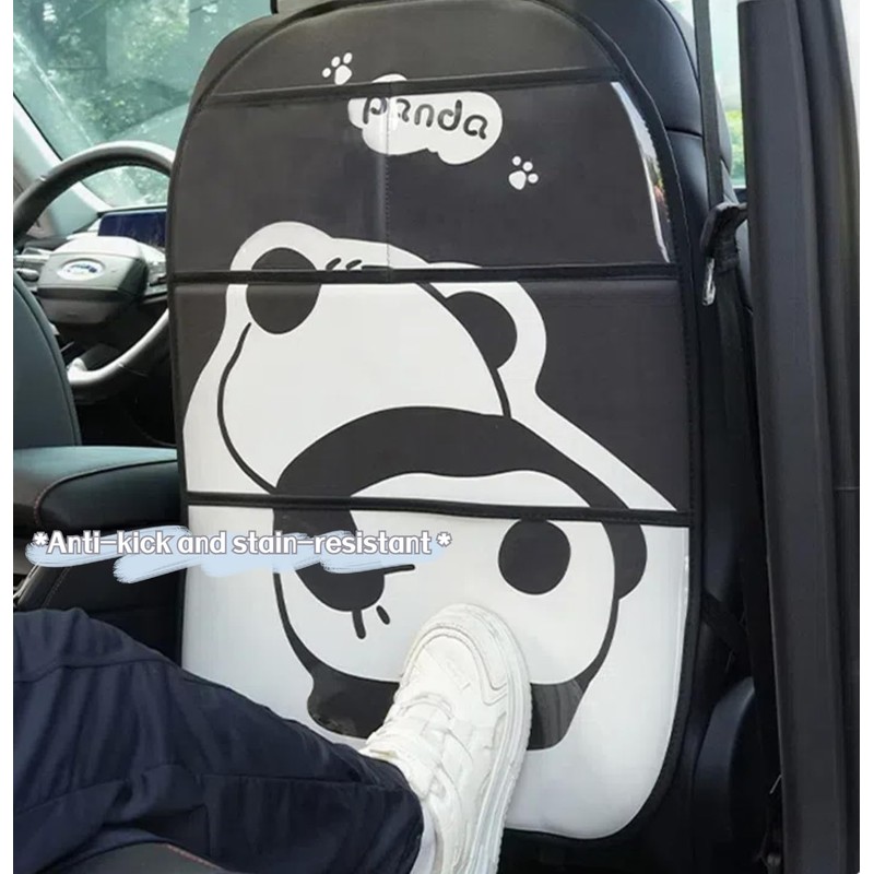 - ♥[Robust and Beautiful] : The car seat protector is made of high quality PU leather with perfect waterproof property and good durability. Cute cartoon panda prints add cuteness to your car. Besides, behind seat car organizer protects the back of your car seat from dust, abrasion and kicking dirt Ideal for those with kids and pets as well.