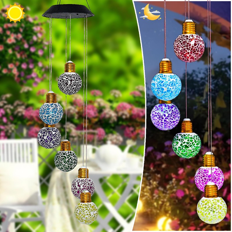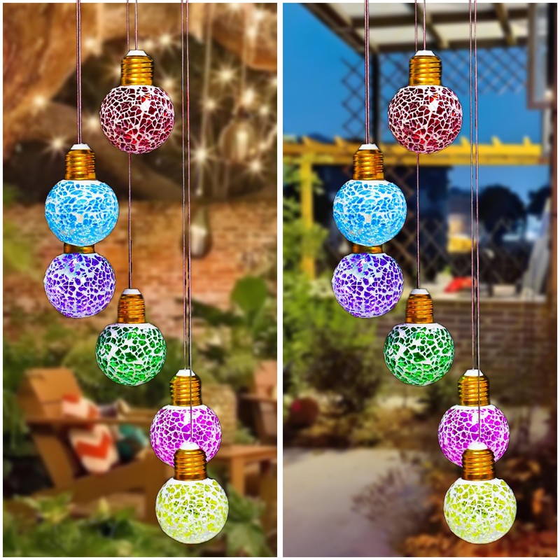YUETJIN Mosaic Edison Bulb Solar Ball Lamp Hanging Wind Chime