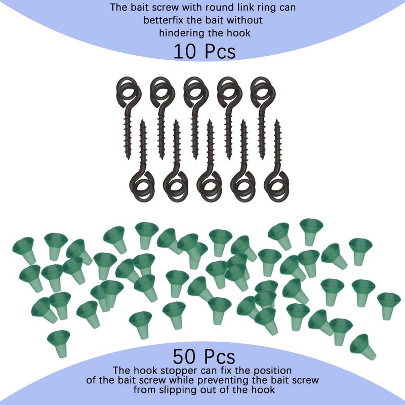 - 10 x Fishing Bait Screws & 50 x Hook Stops - Come with 10 pieces fishing bait screws and 50 pieces rubber hook stops. Necessary fishing accessories for people who loves fishing. Enough quantity for fishing replacement.