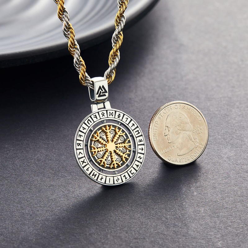 - Viking compass chain material: the compass pendant is made of 925 sterling silver and is gold plated to keep it shiny and bright. With stainless steel chain, hypoallergenic, lead-free, nickel-free, cadmium-free and skin-friendly.