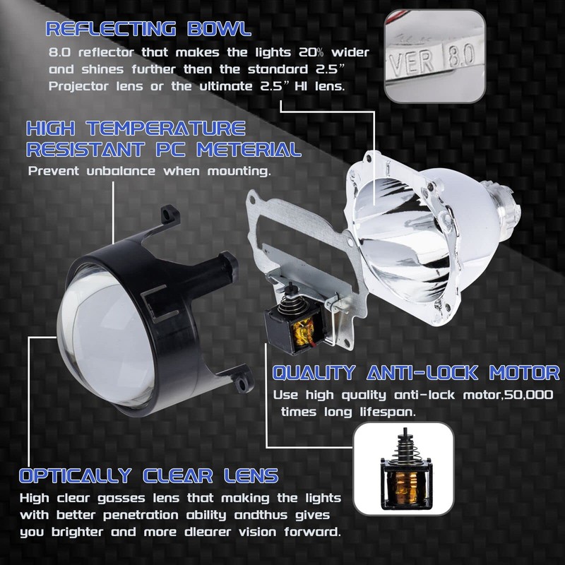 - 【Integrated Design】2.5inch mini size,makes these projector lens perfect fit in tight spaces for quad retrofit or fog light and headlight upgrade ,fit for over 90% car.