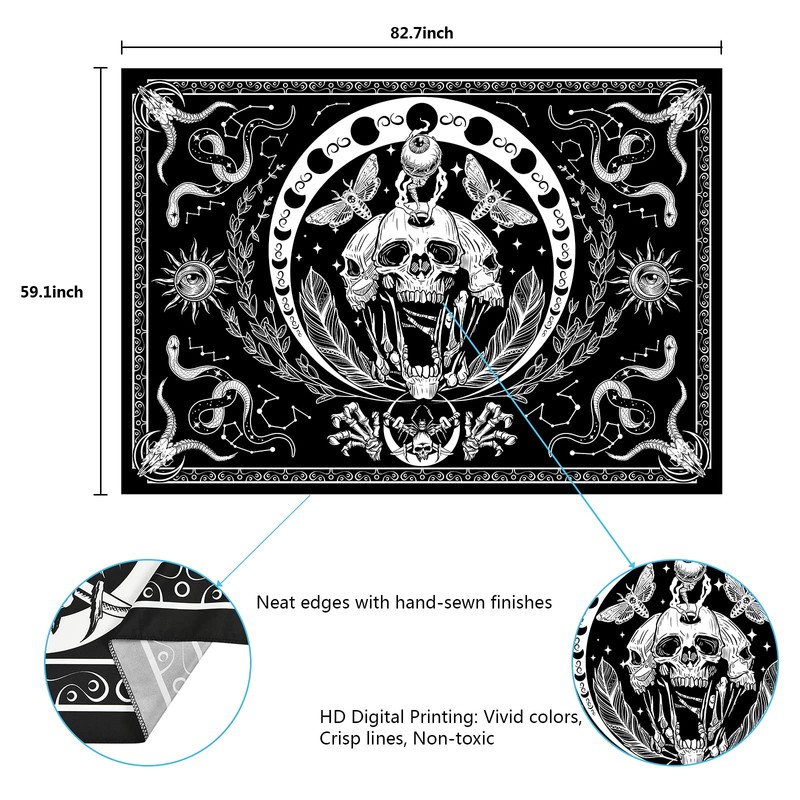 - HIGH QUALITY MATERIAL➡Yugarlibi skull tapestry is made of high quality polyester fabric which is super soft, fade resistant and lightweight. The high-resolution printing technology makes it stylish and impressive. When you hang it on the wall, it will give your room a new look.