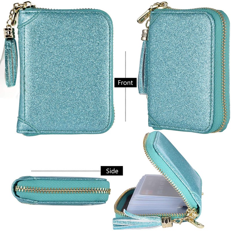 YUHAN PRETTY Womens Credit Card Holder Wallet RFID Leather Small ID Card Case (20 Card Slots - Glitter Teal)