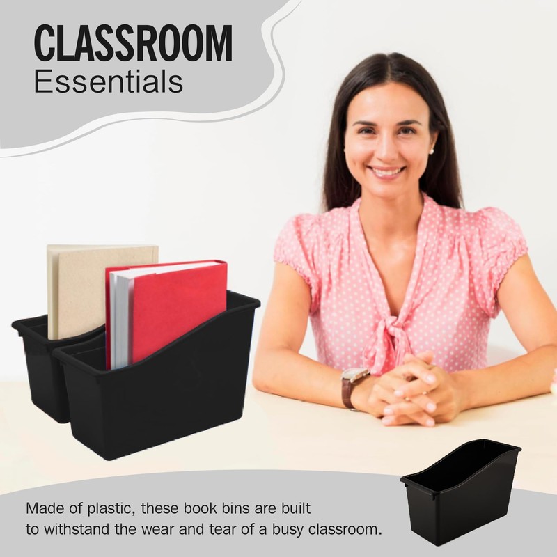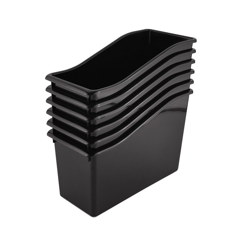 Yujanery 6 Durable Book and Binder Holder, Files Book Bins for Classroom, Plastic Vertical Storage Book Organizer Folder Office Classroom Organization Containers Supplies (Black, 6 Pack)