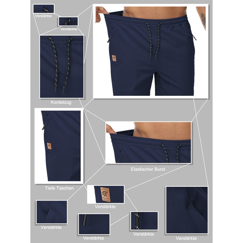- One of the best features of these men's shorts are the 2 practical zip pockets, the pockets are large enough for smartphones and wallet without the contents being visible to the outside or the trousers are particularly inflated.