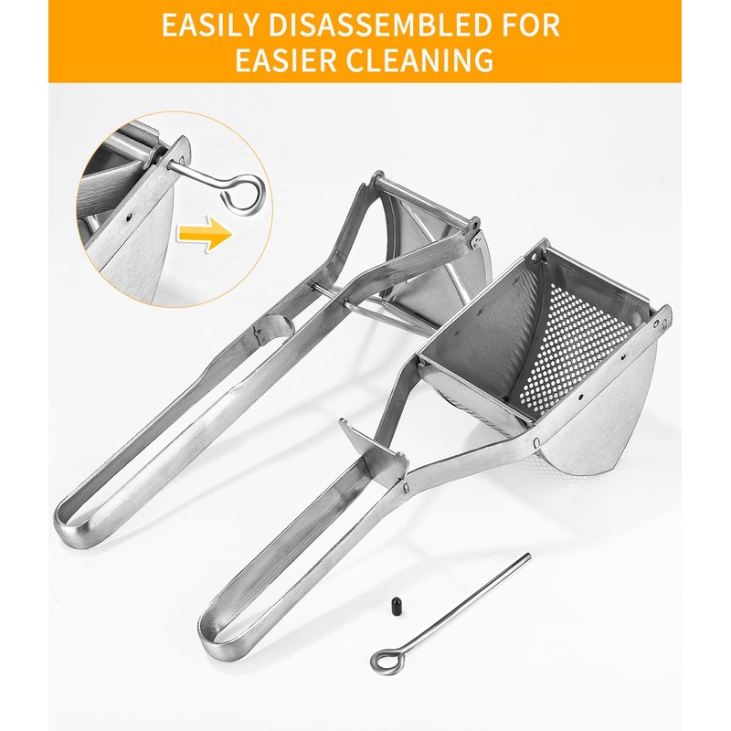 - Safe material: the stainless steel potato press is made of high-quality 430 stainless steel, not easy to dirt, corrode and deform, all food residues can be easily rinsed with running water, also dishwasher safe, easy to clean.