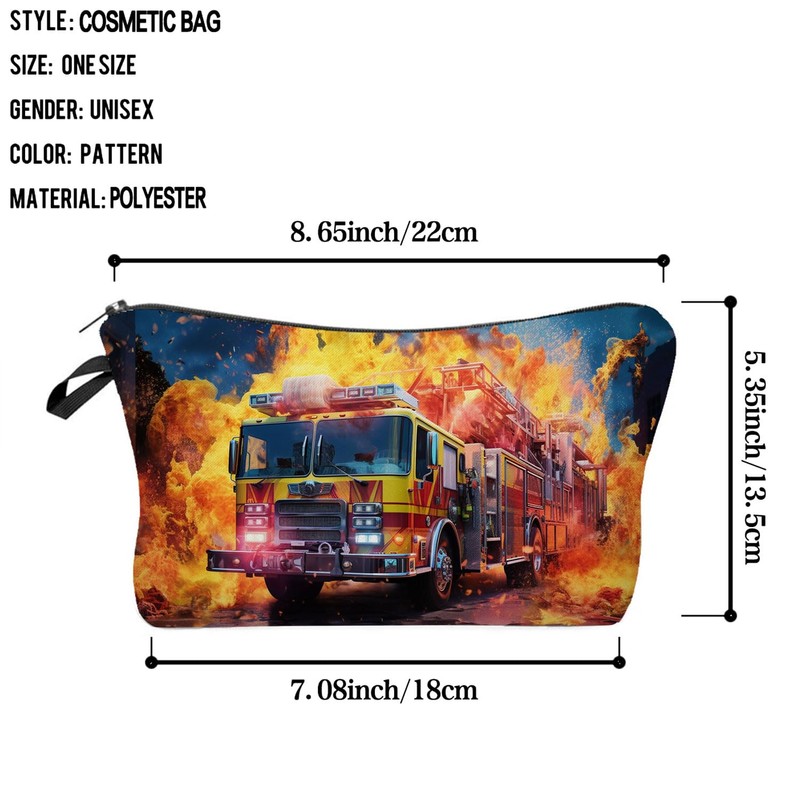 - 5.The Fire Fighting Truck Makeup Bag has plentiful usage scenarios. For example, you can take it as your toiletry organizer, stationery bag, coin purse, cellphone bag, medicine storage bag and so on. Different uses for you to find out!