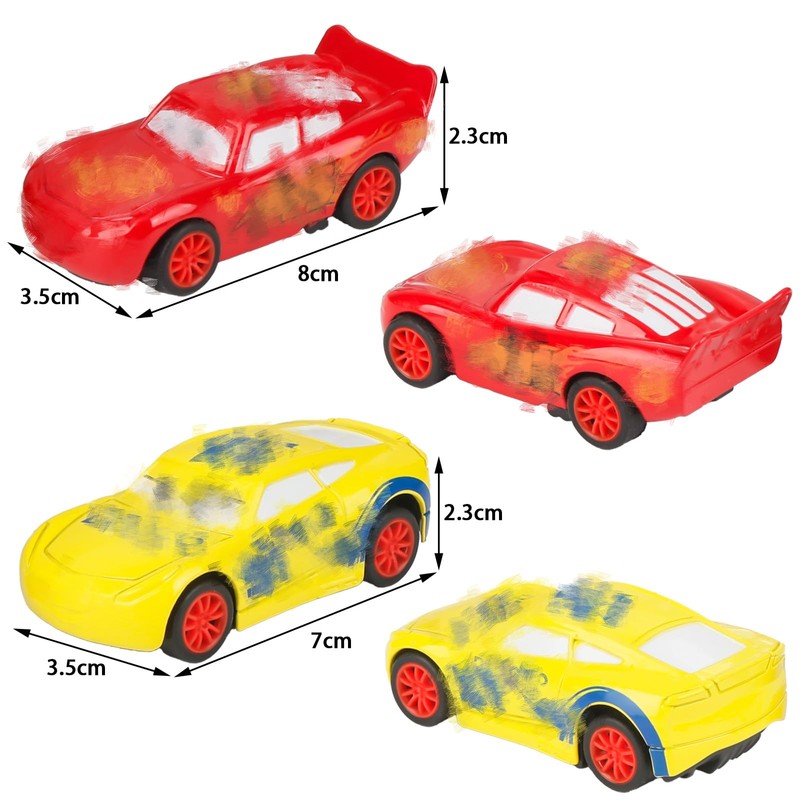 - 🚗【Multiple Car Characters】The set contains 4 different toy cars featuring fan-favorite characters, specially created for car enthusiasts to bring many new adventures to your little racing fan. Suitable for boys and girls.