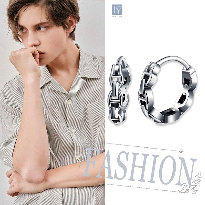 Yumilok Fashion Stainless Steel Chain Earrings Hoops for Men Creative Chain Link Creole Earrings Diameter 1cm Accessories Jewellery for Teenager