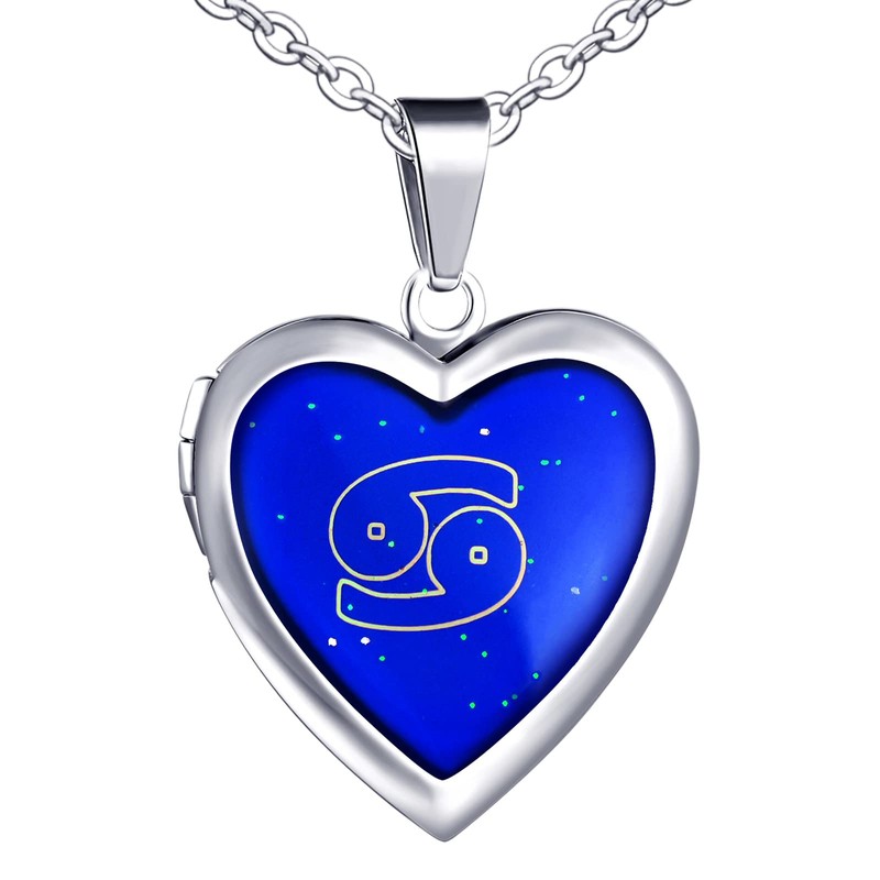 Yumilok Men's Stainless Steel Necklace with Heart Pendant 12 Zodiac Signs Thermal Mood Colour Changing for Women and Men, Stainless Steel