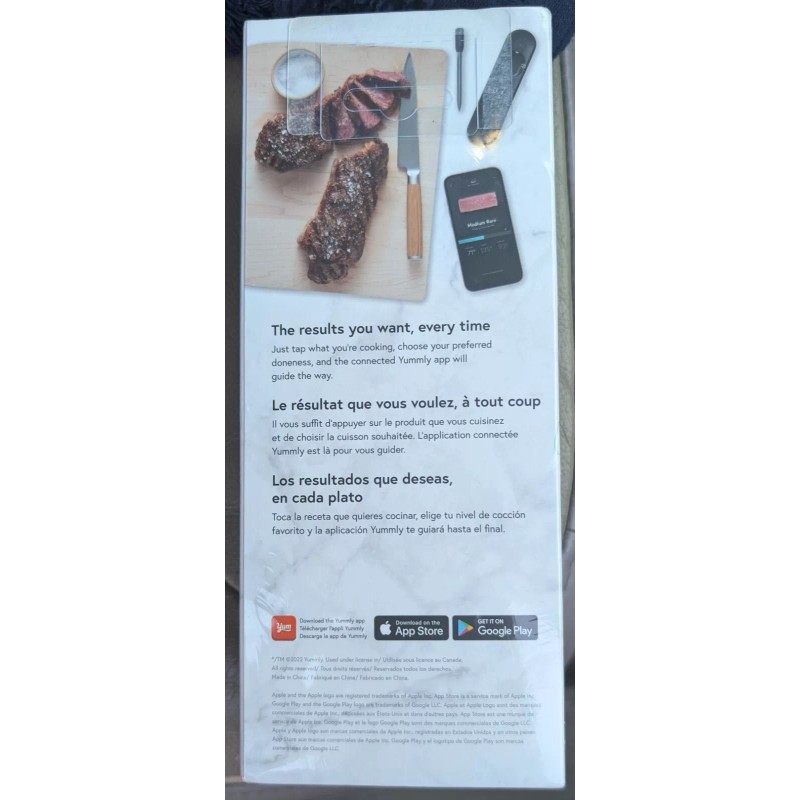 Introducing the Yummly Smart Thermometer, the perfect addition to any kitchen! This Bluetooth Meat Thermometer is brand new and still in its original box, never opened. It boasts a sleek gray color and is designed to help you cook your meals to perfection every time.