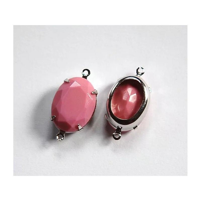 Yummy Treasures Vintage Opaque Pink Faceted Stone in 2 Loop Silver Setting 18x13mm (2) ovl004R2