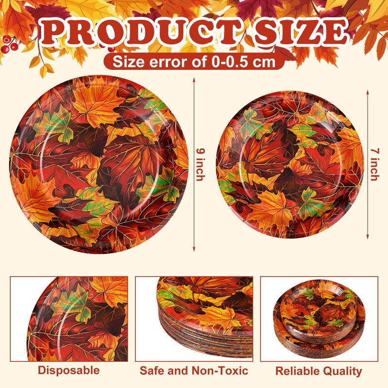 - Fall Leaves Plates: you will get 50 pieces of Derby plates, including 25 pieces of 9 inch fall plates, 25 pieces of 7 inch maple leaves paper plates dessert plates, providing enough tableware for your Thanksgiving dinner, Friends giving celebration, or fall party