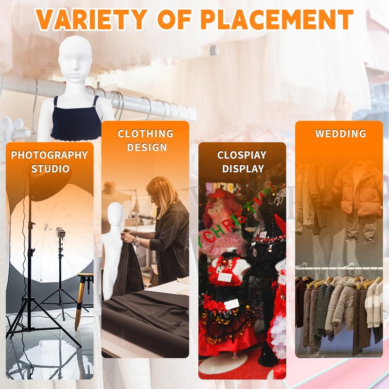- 【Ideal for Fashion Displays】Our human body model is specifically designed for presenting kids' fashion. The full body mannequin was designed to fit a standard figure, Height: 43.3 inch, Bust/Chest: 21.7 inch, Waist: 20 inch.It helps highlight your clothing collections, making it an essential tool for fashion designers, tailors, and retail shops looking to enhance customer engagement.