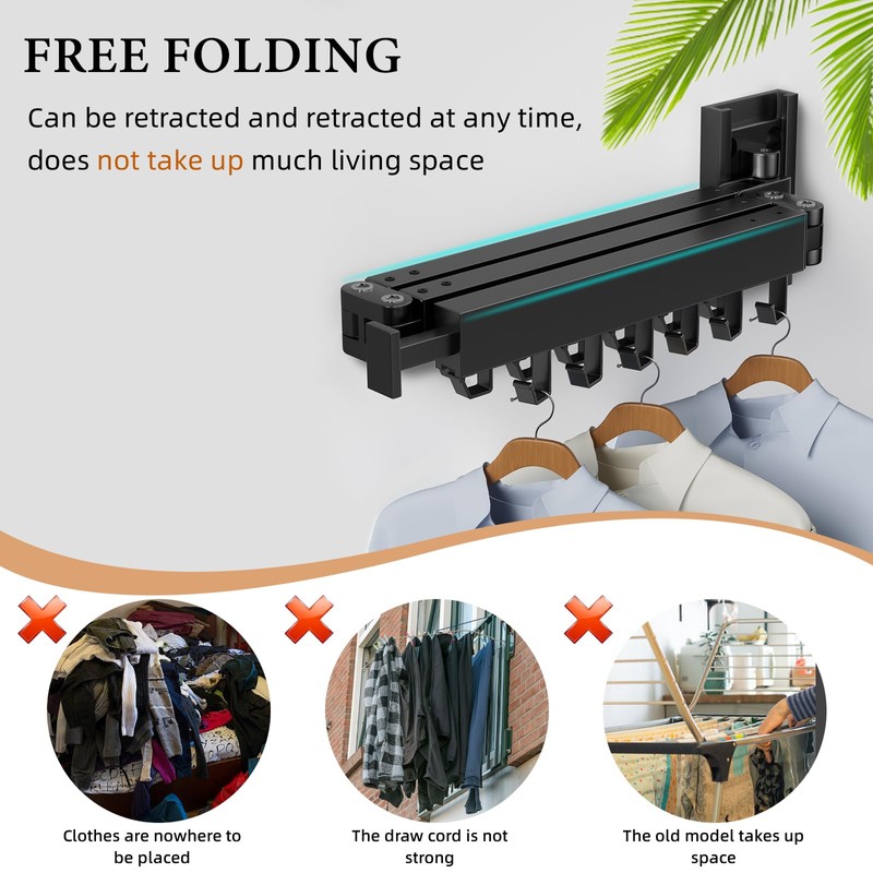 - WALL MOUNTED CLOTHES AIRER Our wall mounted clothes airer maximizes your space as it has 3 foldable & 1 hidden telescopic rod. It is an ideal option for drying various garments such as shirts, towels, socks, hats, coats, suits, dresses and much more. Its compact and stylish design efficiently helps organize your laundry room