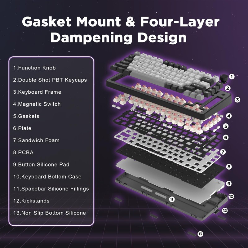- Advanced Hall Effect Magnetic Switches: RT75 keyboard utilizes Outemu magnetic switches, which leverage the Hall Effect to register keystrokes. It can physical touch between the keycap and switch, resulting in greater durability, longer lifespan, faster response times, and reduced wear and tear. This magnetic switch keyboard feature enhances your gaming efficiency, making it one of the fastest gaming keyboards availabl.