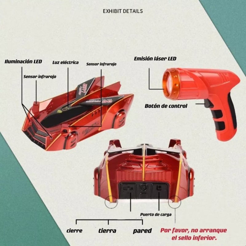 Fácil de controlar: este ligero vehículo de escalada de pared es divertido y fácil de controlar para cualquier corredor. Con control multidirección, simplemente apunta la luz láser en cualquier lugar que desees que el láser de gravedad cero vaya, puedes hacer giros bruscos e incluso hacer que gire