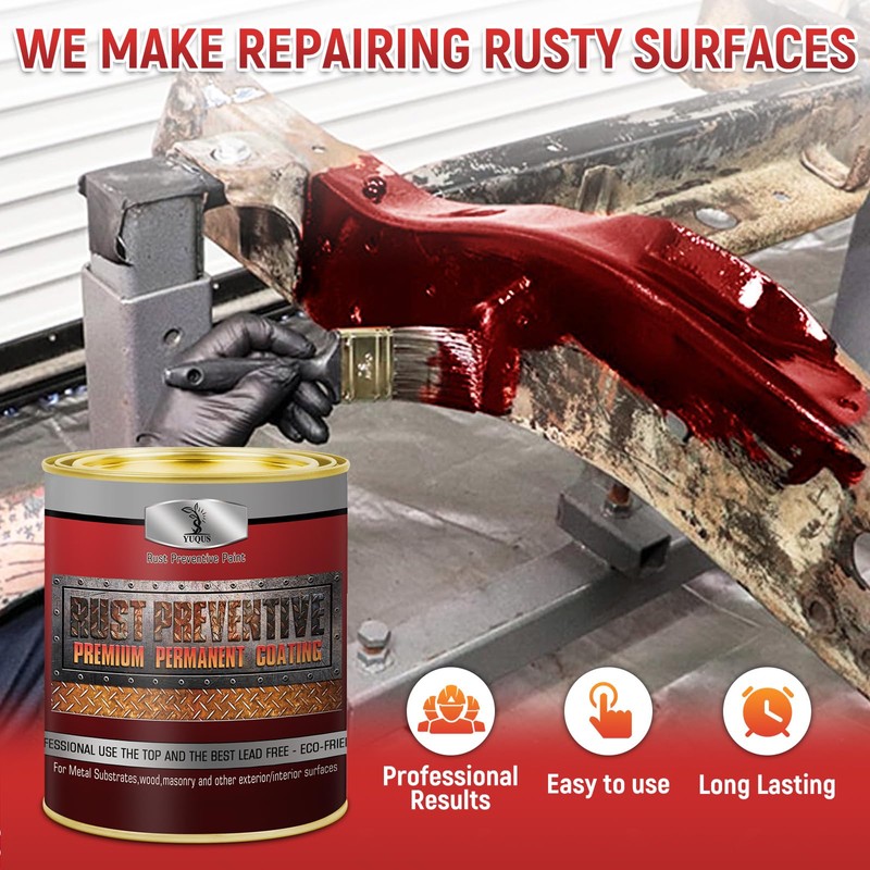 YUQUS Water-Based Metal Anti-Rust Paint, High Gloss Red 32 fl oz, Metal Primer and Protective Coating, Rust-Proof Coating, Permanent Protection Against Rust and Corrosion