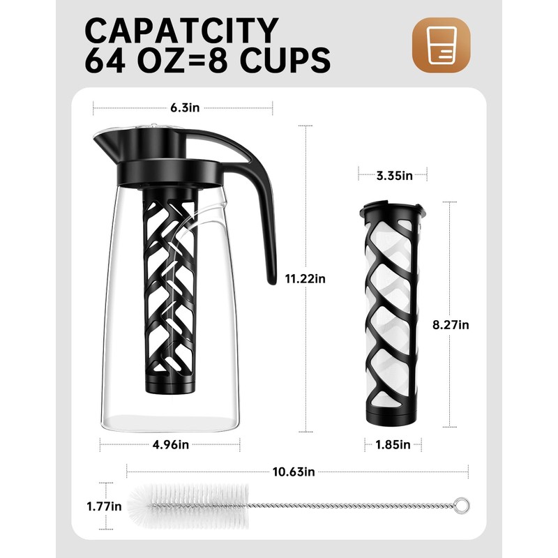 - [What You Will Get]: It inclusion 2100ml pitcher*1, ultra-fine filter*1, cleaning brush*1, Large capacity is enough for your daily use. Please note: Do not pour hot water above 90 ℃.