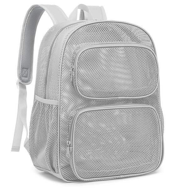 Yusudan Mesh Backpack for School, Heavy Duty Girls Boys Mesh Bookbag School Bag for Adults Kids Swimming Beach Fitness Sport (Grey)