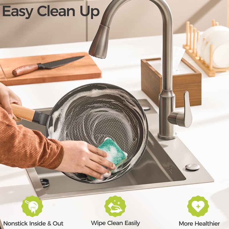 - Healthy Non-Stick Cooking:The YUTANN 8-inch cast iron skillet features a unique waffling pattern that locks in oil droplets, reducing the need for excess oil and ensuring healthier, low-fat cooking. The non stick coating is free of harmful chemicals like PFAS and PFOA, offering a toxin-free, non-stick surface that makes every meal healthier and cleanup a breeze.