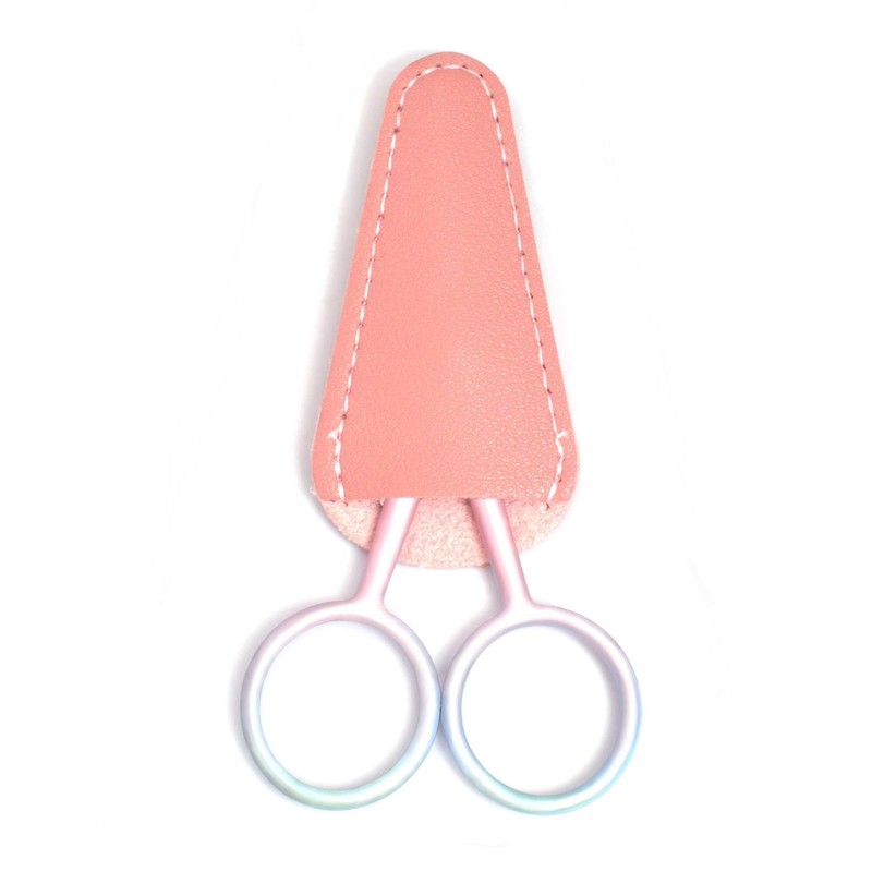 Yutoner Premium Manicure Rounded Tip Scissors Multi-purpose Stainless Steel Cuticle Pedicure Beauty Grooming Shears for Nail, Eyebrow, Eyelash, Nose Hair (Pink 4 Inch With Artificial Leather Cover)