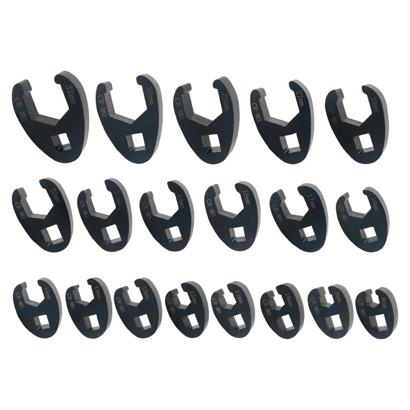 - Versatile 19-Piece Set – Includes a full range of metric crowfoot flare nut wrenches (8mm-32mm) compatible with 3/8” and 1/2” drive ratchets, torque wrenches, and extensions for maximum adaptability.