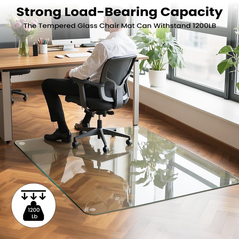 - High Quality Tempered Glass: Yuzeyurun glass office chair mats for carpets or hard floor are made of 0.2" thick high-quality tempered glass, capable of withstanding over 1200 pounds of pressure, ensuring long-lasting durability. In addition, the fully clear design provides excellent transparency, allowing your carpet's pattern to shine through while offering protection.