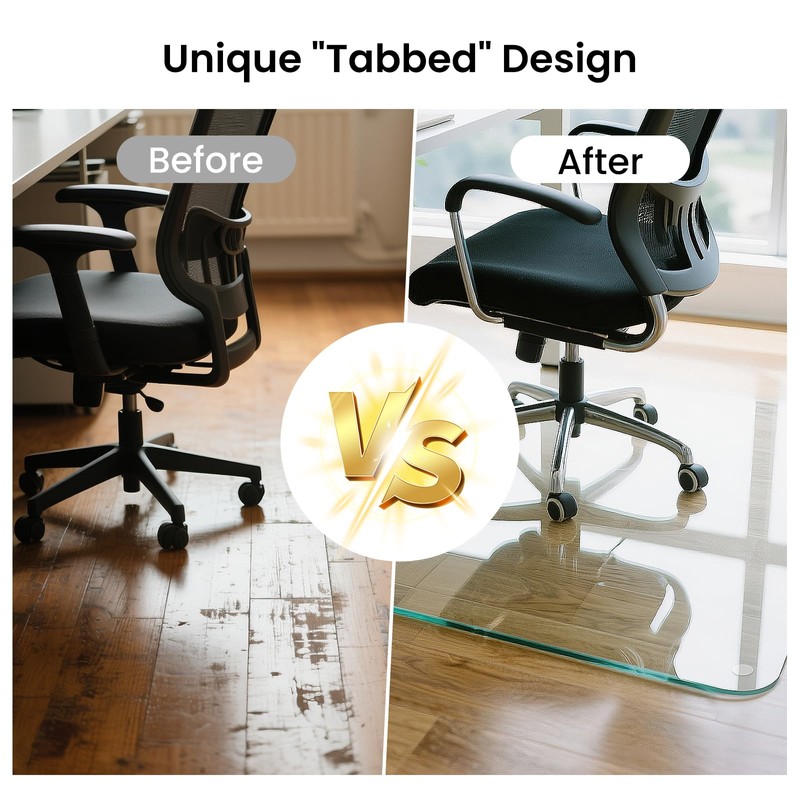 - Easy Chair Movement: The smooth surface of the tempered glass floor mat ensures effortless sliding of chairs with pulleys, providing a smooth and relaxed experience. Therefore, this chair floor mat is perfect for office and home office, and enhances your work experience
