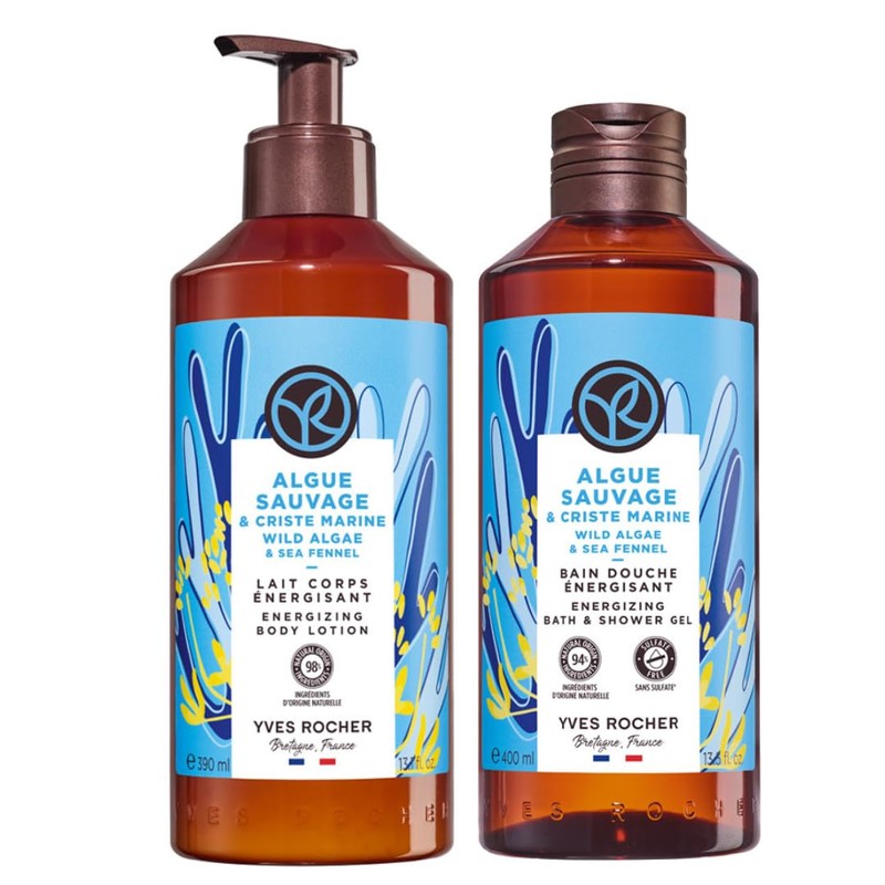 Yves Rocher MAXI SET Cuidado Corporal ENERGIZANTE Alga Salvaje e Hinojo: Crema fluida (390 ml) y Gel de ducha (400 ml)