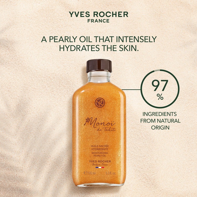 Yves Rocher Monoi Pearly Oil, Skincare, Body and Hair,Made In France, 100 ML, Intense mosturizing, hydratation, beautiful tan glow, Monoi fragnance.