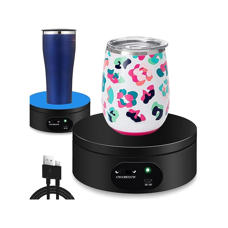 YVV Motorized Rotating Display Stand,Turner Cup Platform for Epoxy Glitter Tumbler, 360 Automatic Mute Rotating Turntable, Tumbler Making Supplies Spinner, Base for Product Video Show ,Balck 4.72in