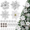 YWEVYEZC 108Pcs 4 Styles Christmas Poinsettia Flowers Set, 24Pcs Artificial Glitter Christmas Flowers with Clips and Berries Stems for Christmas Tree Wreath Wedding Party Decor