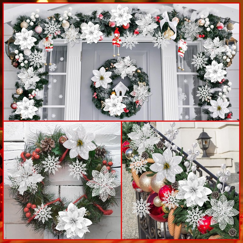 - Simple Assembly: The size of artificial poinsettia flowers is around 15 cm (5.9 inches). Included with the artificial Christmas flowers are convenient clips, allowing you to easily clip on poinsettias for Christmas tree Christmas wreath. They are lightweight enough to enhance your Christmas decoration effortlessly.