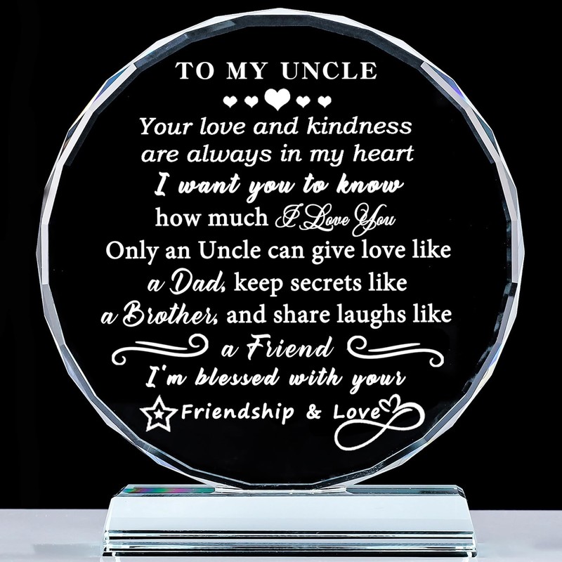 - 🎁Regalos para mi tío de sobrina/sobrino: regalos únicos para tío de sobrina/sobrino para cumpleaños de tío, día de San Valentín, día del padre, Acción de Gracias o Navidad en casa, celebración y aniversario, es una sorpresa sentimental. El mejor regalo de recuerdo de vidrio para expresar tu amor a tu querido tío
