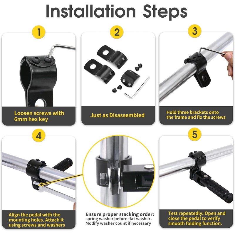 【Reasonable Design】The support rod can be folded 90 degree fixed, stay folded or fixed in an "L" shape. Using as rebound front pedal, 90 degree rear pedal, can be fixed at right angle, The product includes mounting screws for easy and quick to install.