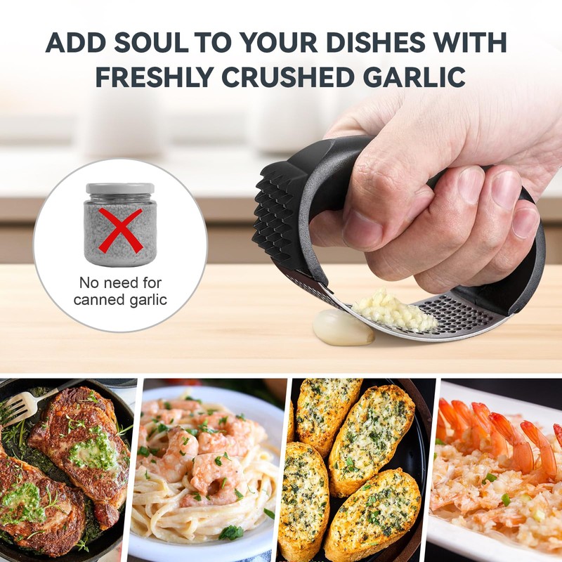 Introducing our premium GARLIC PRESSER, a versatile and durable kitchen tool designed to enhance your culinary experience. Crafted from high-quality STAINLESS STEEL, this GARLIC ROCKER STAINLESS STEEL ensures longevity and resistance to rust, making it a reliable addition to any kitchen. Whether you prefer the traditional GARLIC PRESS CRUSHER or the innovative GARLIC PRESS ROCKER, this multifunctional tool caters to all your garlic preparation needs. Its ergonomic design not only ensures ease of use but also promotes efficient GARLIC SMASHER action, allowing you to mince garlic effortlessly. Ideal for both professional CHEF and home cooks, this GARLIC PRESS STAINLESS STEEL is perfect for creating flavorful dishes with minimal effort. Additionally, the inclusion of a GARLIC PEELER makes this set a comprehensive solution for all your garlic-related tasks. Elevate your kitchen efficiency with the BEST GARLIC PRESS, and enjoy the convenience of a GARLIC TWISTER MINCER that simplifies your cooking routine. Experience the difference with our STAINLESS STEEL GARLIC PRESS ROCKER, and transform the way you prepare garlic in your culinary endeavors.